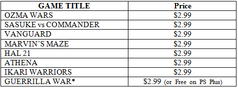 * GUERRILLA WAR will be featured as a FREE GAME for Playstation®Plus members